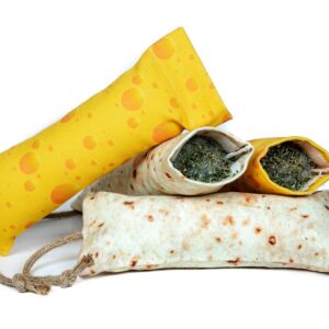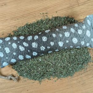 Our 10 inch tough canvas catnip kickers in a variety of fabrics and stuffed with pure 100% catnip – and catnip only! The tough fabric is great for rough players and the larger width makes it easier for cats to hold on to get their bunny kicks in!