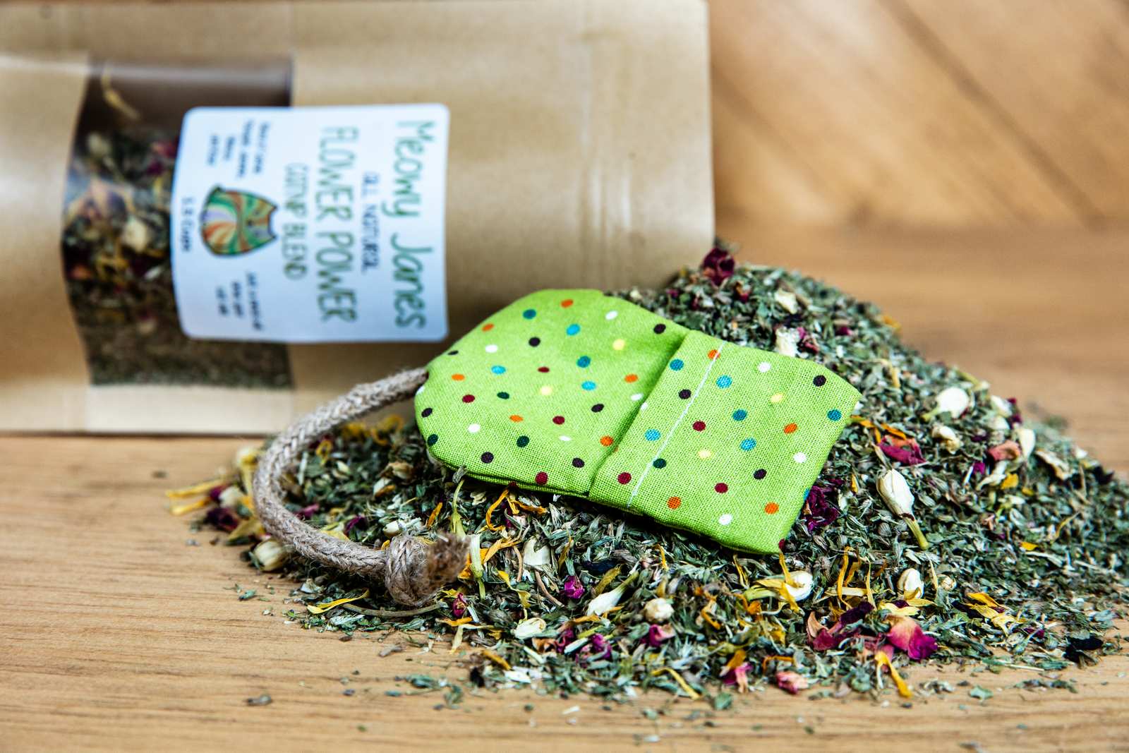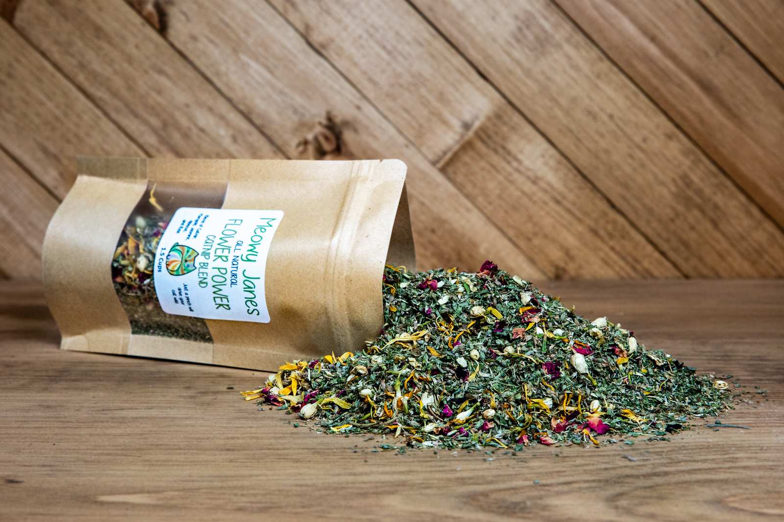 Sprinkle a small amount of the blend in your cat’s favorite play area or use it to refill cat toys. Observe as your cat pounces, bats, and rolls in delight, experiencing the full Flower Power effect.