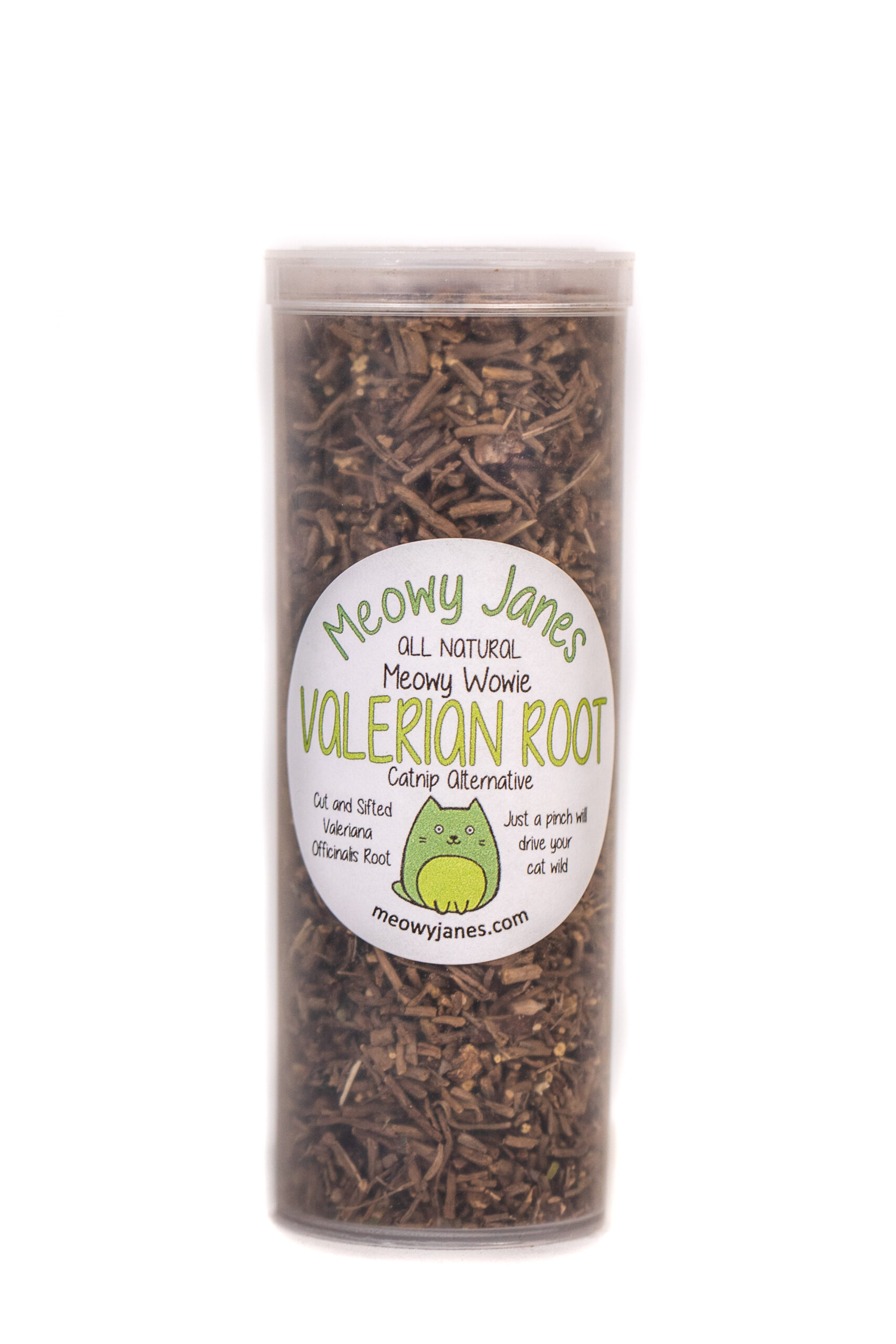 Meowy Janes Valerian Root is the coarsely chopped root of Valeriana Officinalis, a flowering plant with sweetly scented white or pink flowers that grows around the world. It has been used as a medicinal herb for humans since the time of ancient Greece and Rome.
