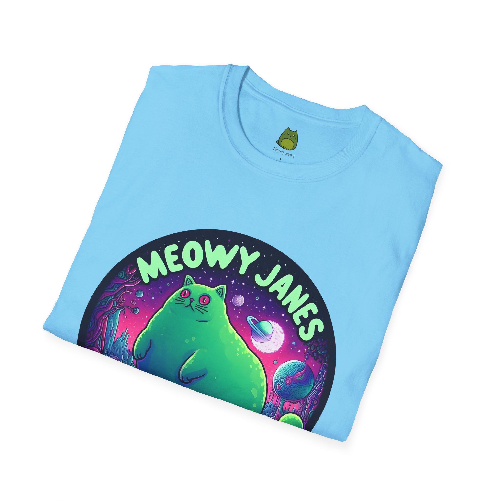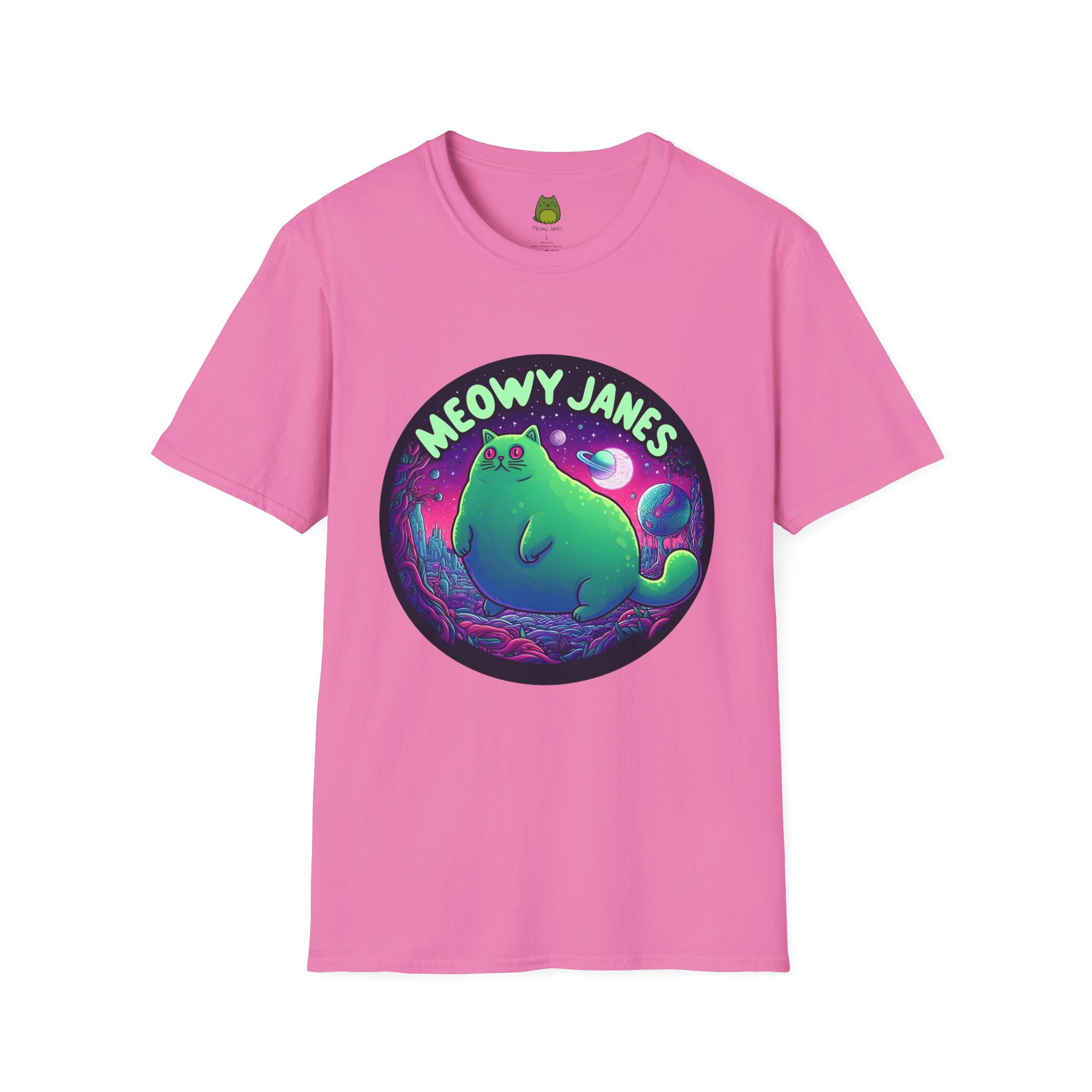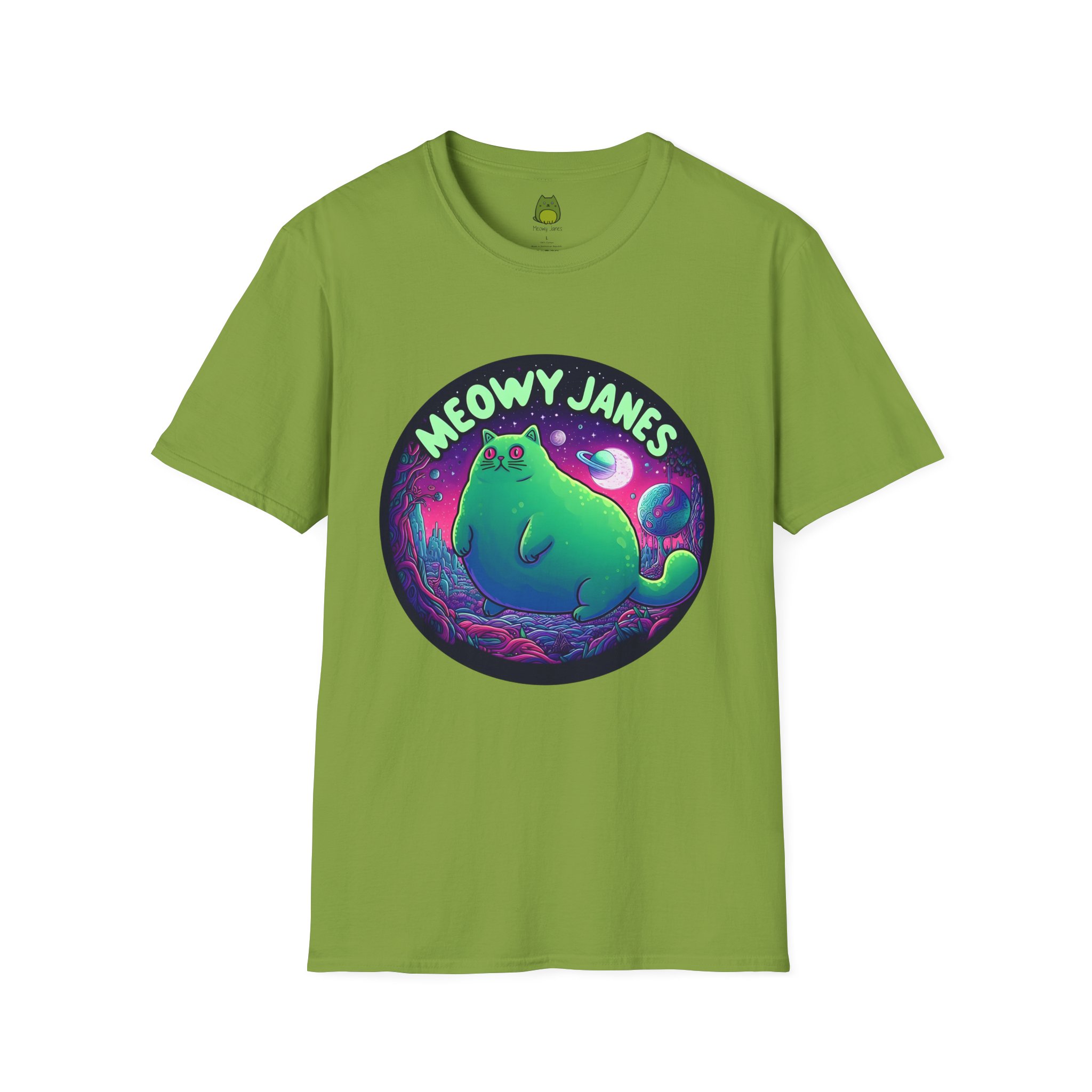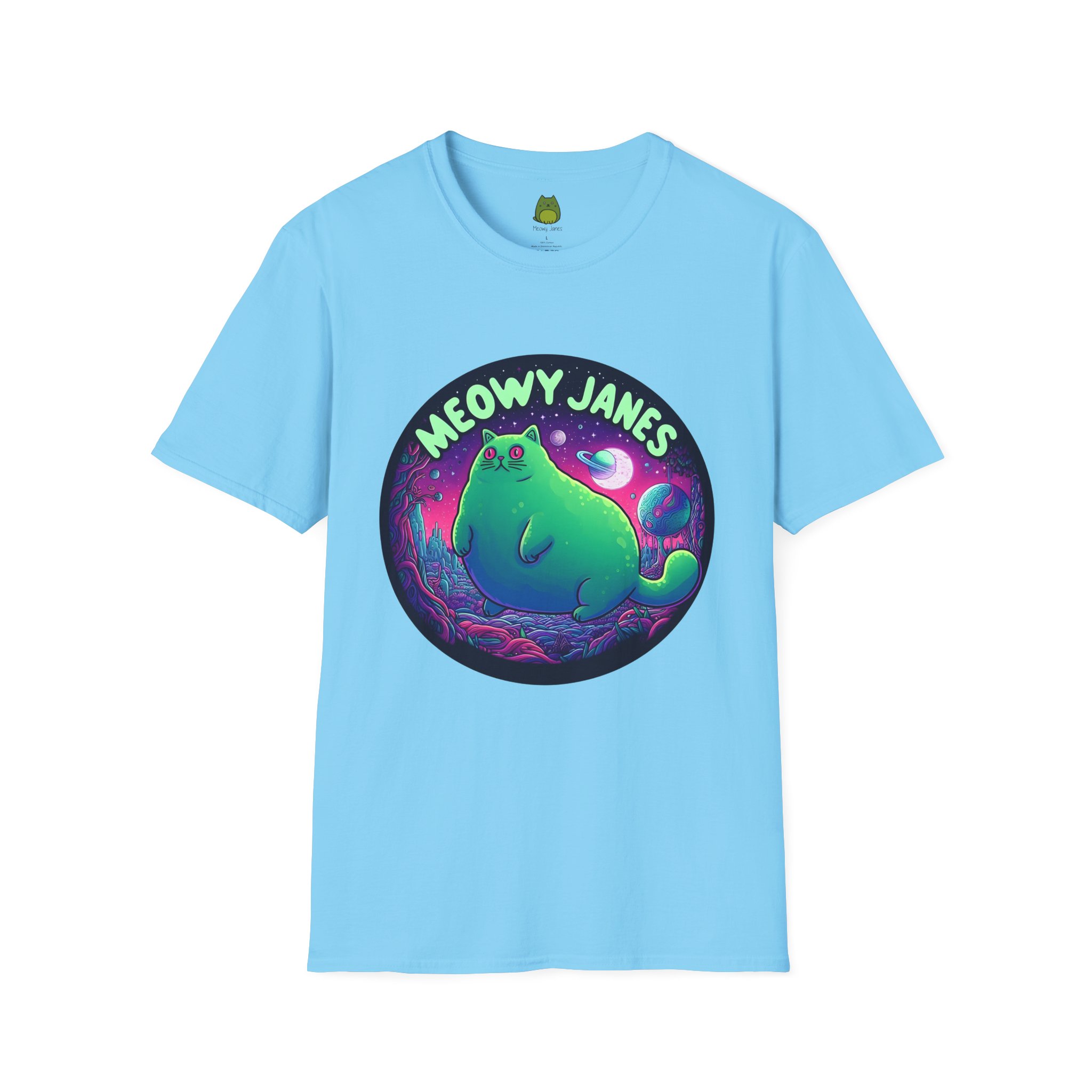 Dive into a trippy, acid-inspired world featuring a whimsical cat. Perfect for those who love a touch of the surreal, this shirt is a must-have for any feline enthusiast. This softstyle T-shirt is perfect for cat lovers and those who enjoy a whimsical and quirky style. Embrace the enchantment and let your style purr with Meowy Janes.