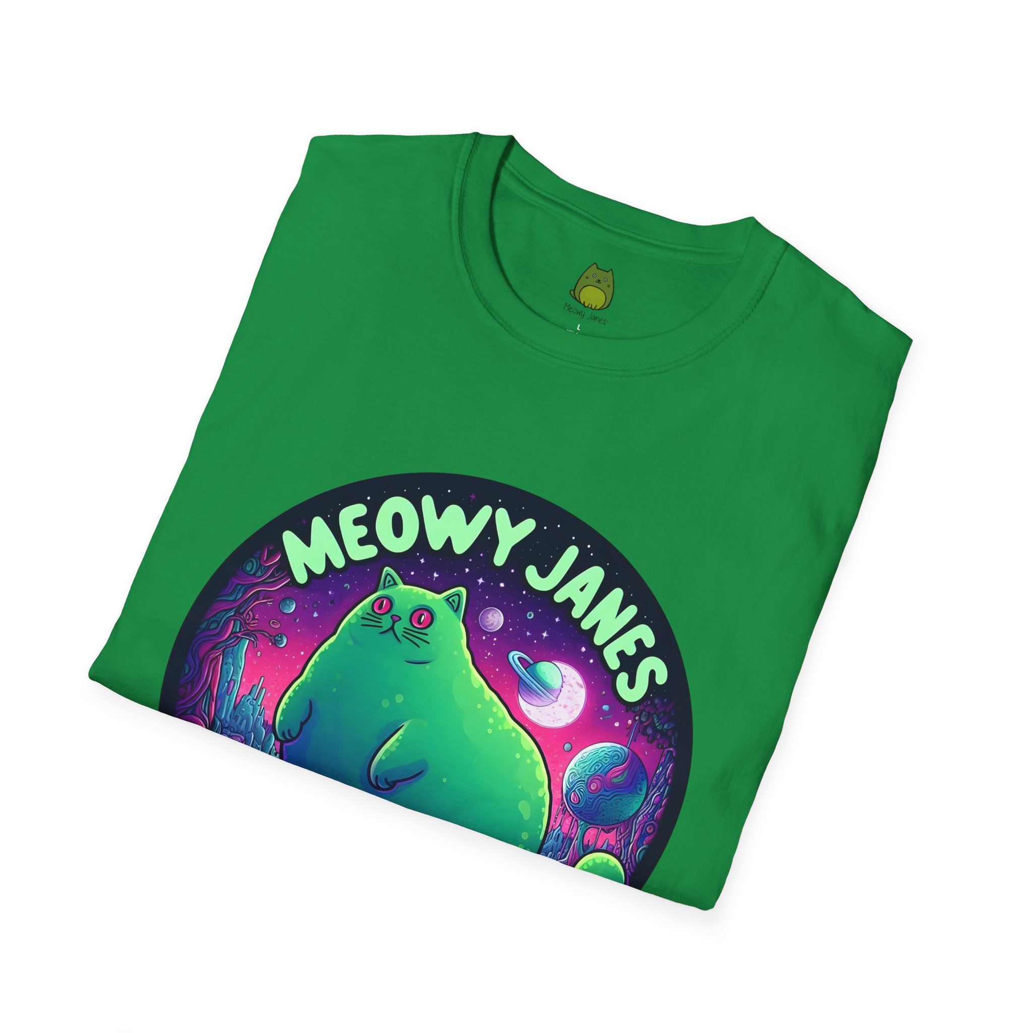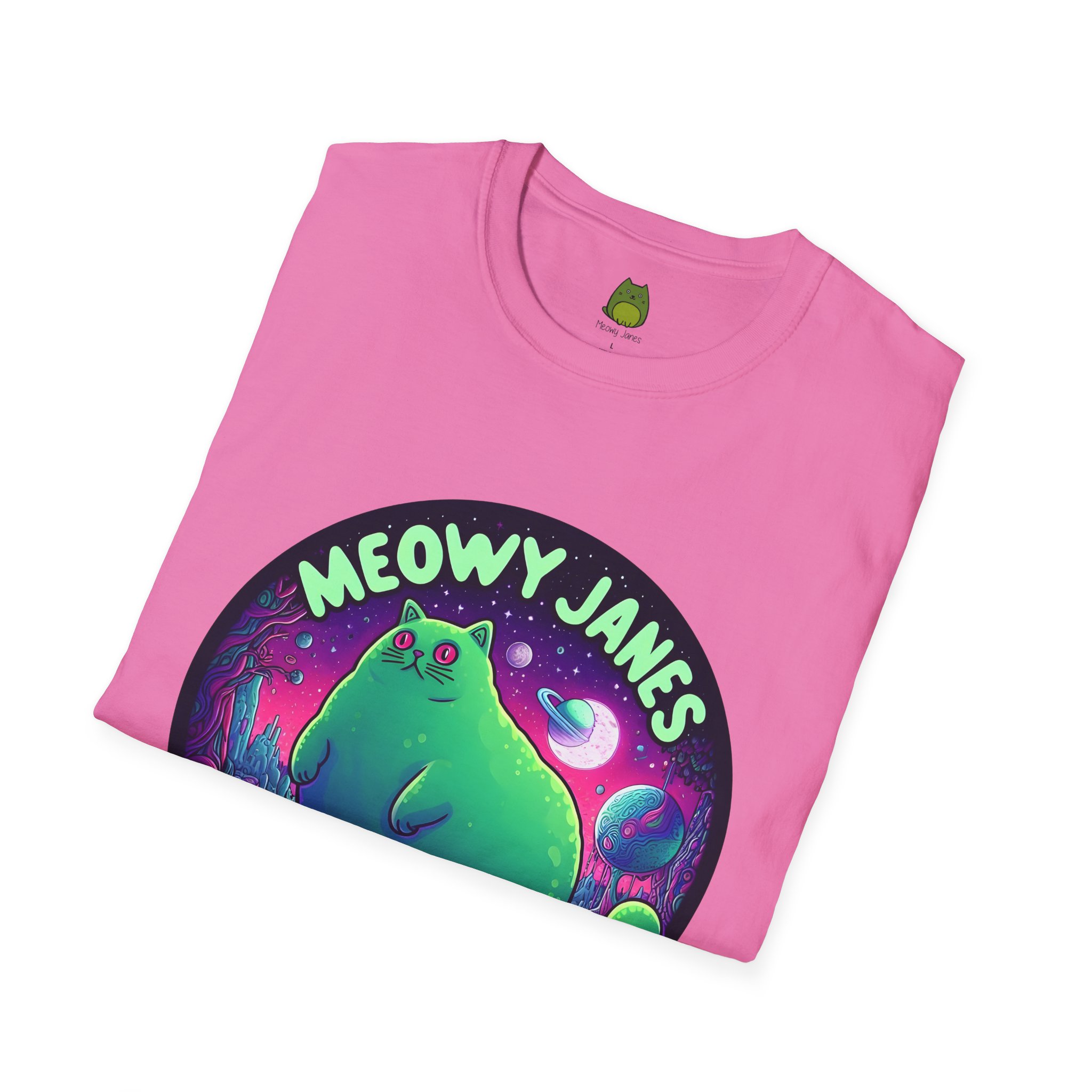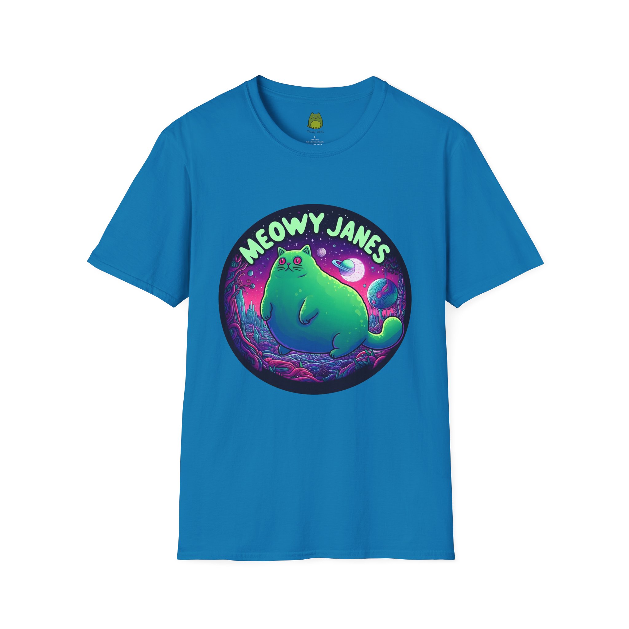 Dive into a trippy, acid-inspired world featuring a whimsical cat. Perfect for those who love a touch of the surreal, this shirt is a must-have for any feline enthusiast. This softstyle T-shirt is perfect for cat lovers and those who enjoy a whimsical and quirky style. Embrace the enchantment and let your style purr with Meowy Janes.