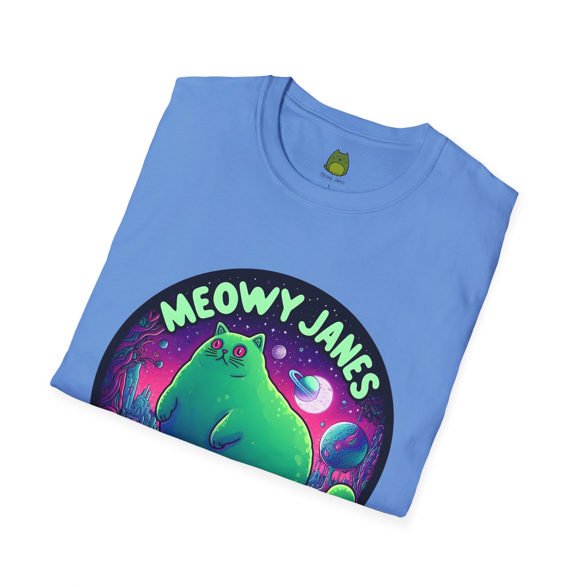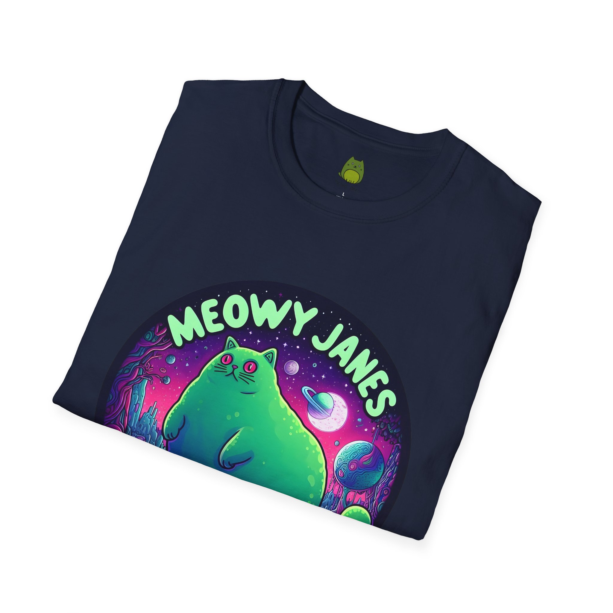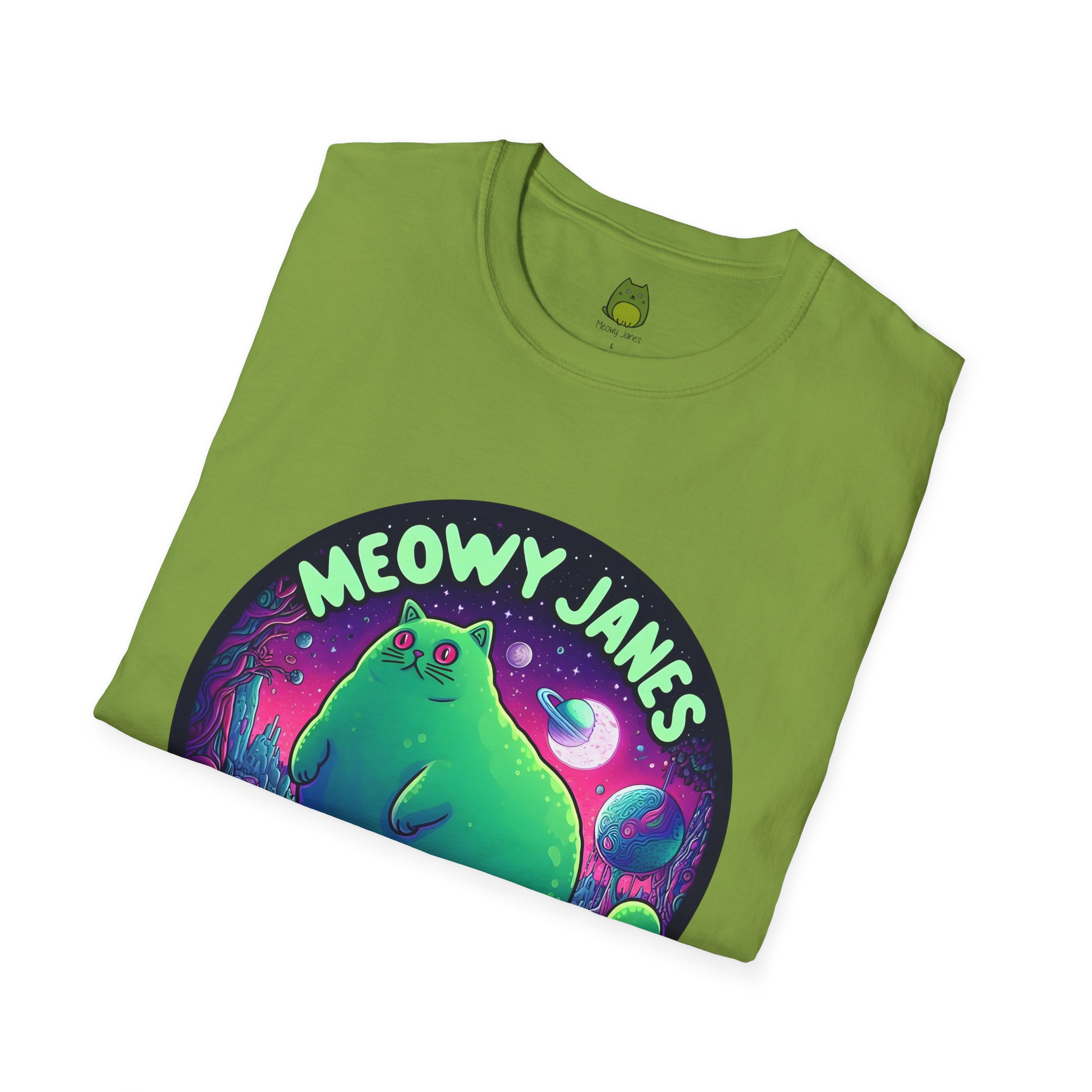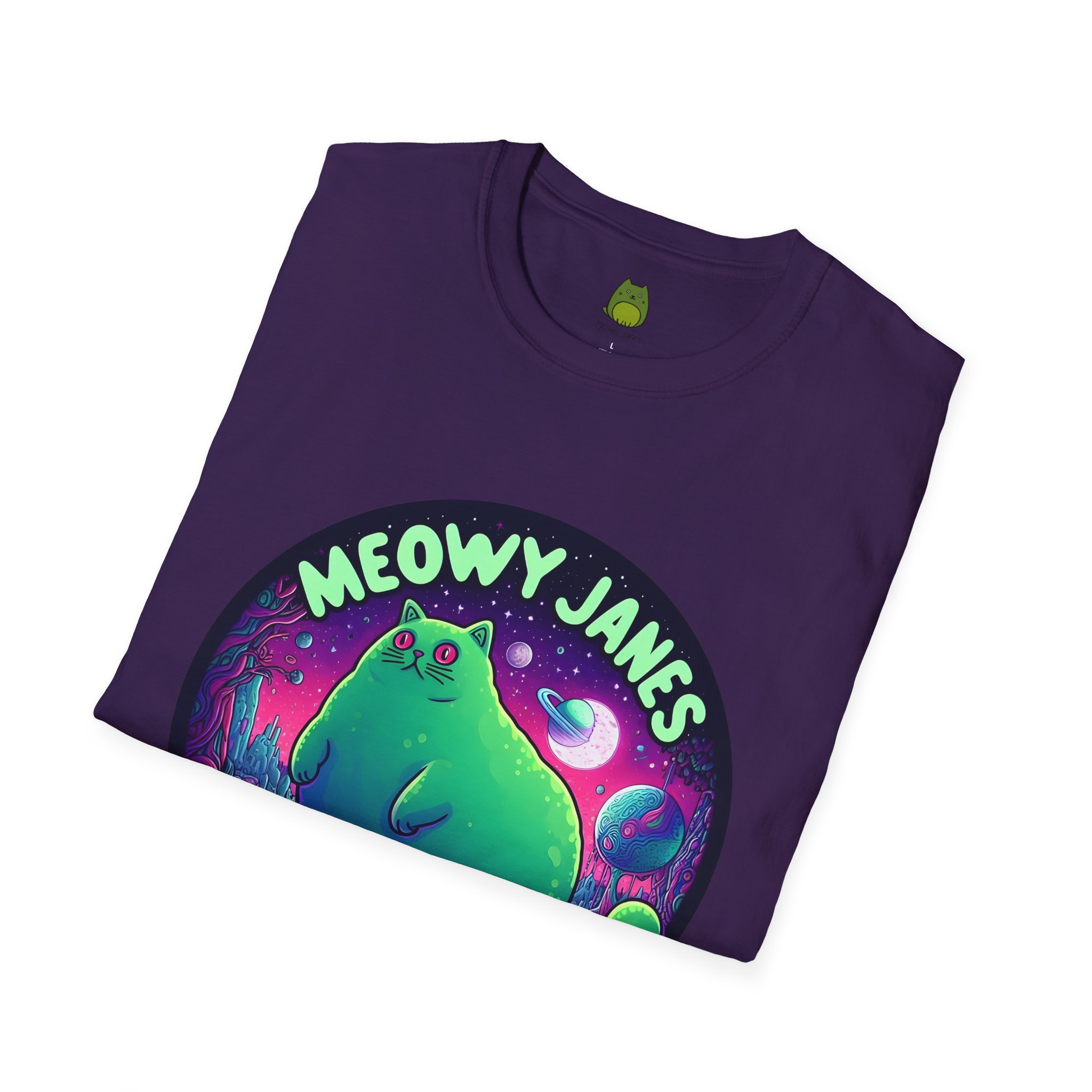 Dive into a trippy, acid-inspired world featuring a whimsical cat. Perfect for those who love a touch of the surreal, this shirt is a must-have for any feline enthusiast. This softstyle T-shirt is perfect for cat lovers and those who enjoy a whimsical and quirky style. Embrace the enchantment and let your style purr with Meowy Janes.