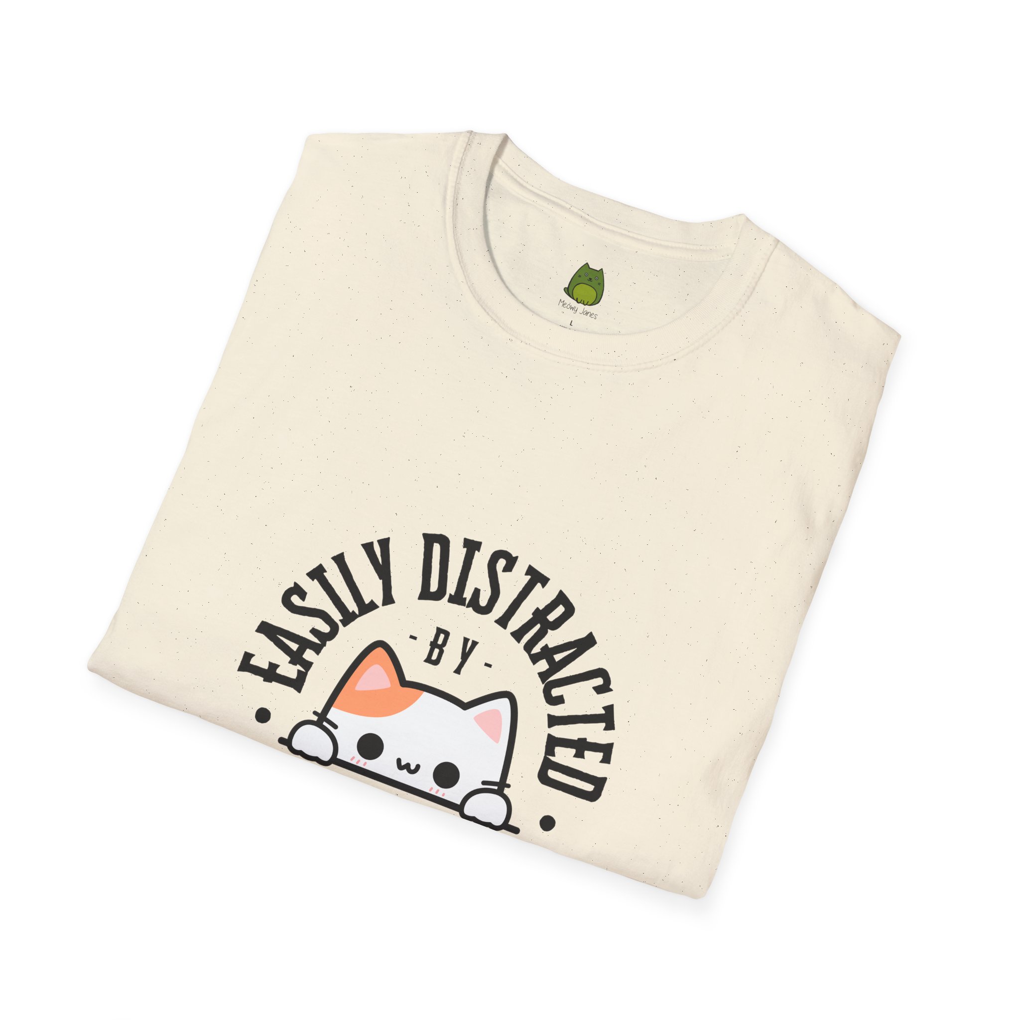 Embrace your love for all things cute and feline with our “Easily Distracted by Cats” shirt! This adorable tee features a kawaii-style cat illustration that’s as irresistible as a real-life kitty. Perfect for animal lovers and cat enthusiasts, this shirt is designed for those who can’t help but be captivated by every purr and whisker. Made from soft, high-quality fabric, it’s comfortable enough for everyday wear, whether you’re lounging at home or out spotting cats in the wild.
