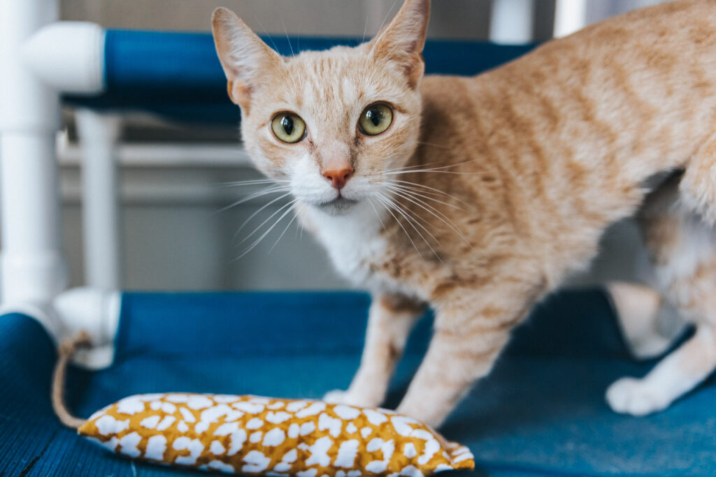 - Mental Stimulation: Play engages your cat’s mind and helps prevent boredom, in turn reducing behavioral problems. Toys that require problem-solving or engage their natural instincts like hunting are great for keeping your cat’s brain active. Cats are natural hunters, and play allows them to express these instincts in a safe environment. Toys that mimic prey, such as feather wands and small moving objects, can satisfy their need for mental stimulation through hunting behaviors. This is especially important for indoor cats.